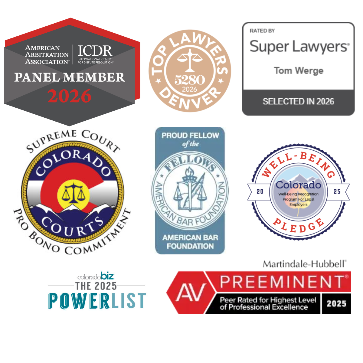 Colorado Best Lawyers, 2025-2026; Best Lawyers: Commercial Litigation & Litigation - Intellectual Property 2024-2025; Best Lawyers: Ones to Watch, 2022-23
